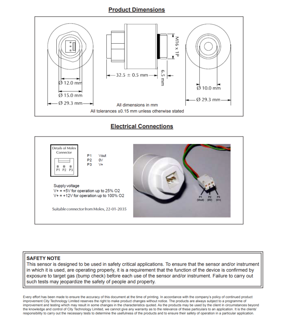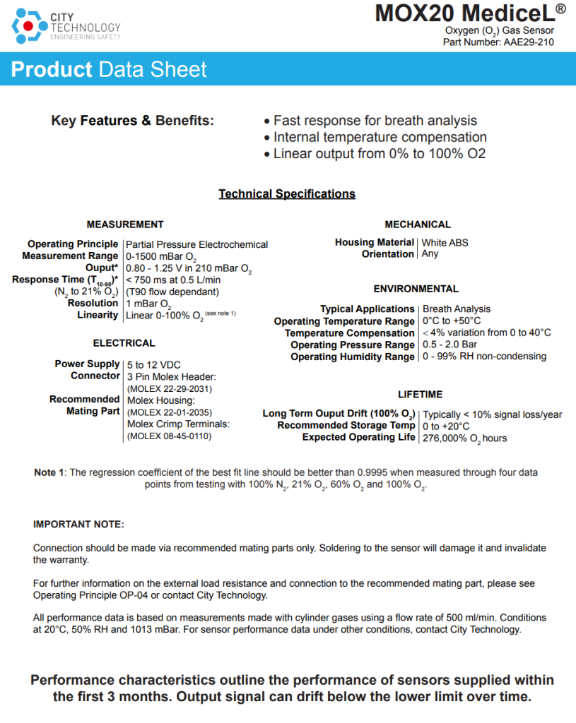 MOX20 MediceL® Oxygen (O2) Gas Sensor Part Number: AAE29-210