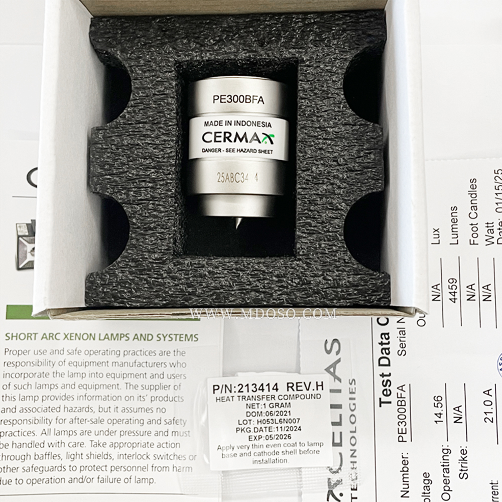 The PE300BFA features high-intensity illumination – 5,000 Lumens, with a power range of 180-320 Watts. It has a broad spectral range with 5,900 Kelvin color temperature, and a lamp lifetime of 1,000 hours.